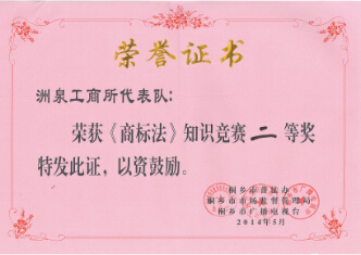 5月15日, ,,,,,桐乡市市场监视管理局团结桐乡市普法办、桐乡市广播电视台举行“关注新法、强化意识”为主题的《商标法》知识竞赛运动。。。。。我公司人资企管部周英加入了此次角逐。。。。。