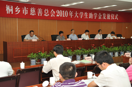 8月27日下昼,,,,,,,,桐乡市慈善总会2010年大学新生助学金发放仪式在市政府举行,,,,,,,,ca88官方唯一网站股份也响应招呼起劲捐钱助学。。。。。。图为董事长沈耿亮代表ca88官方唯一网站股份公司出席了助学金发放仪式。。。。。。